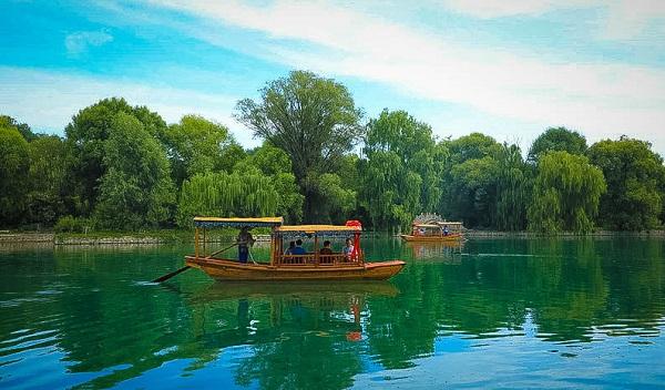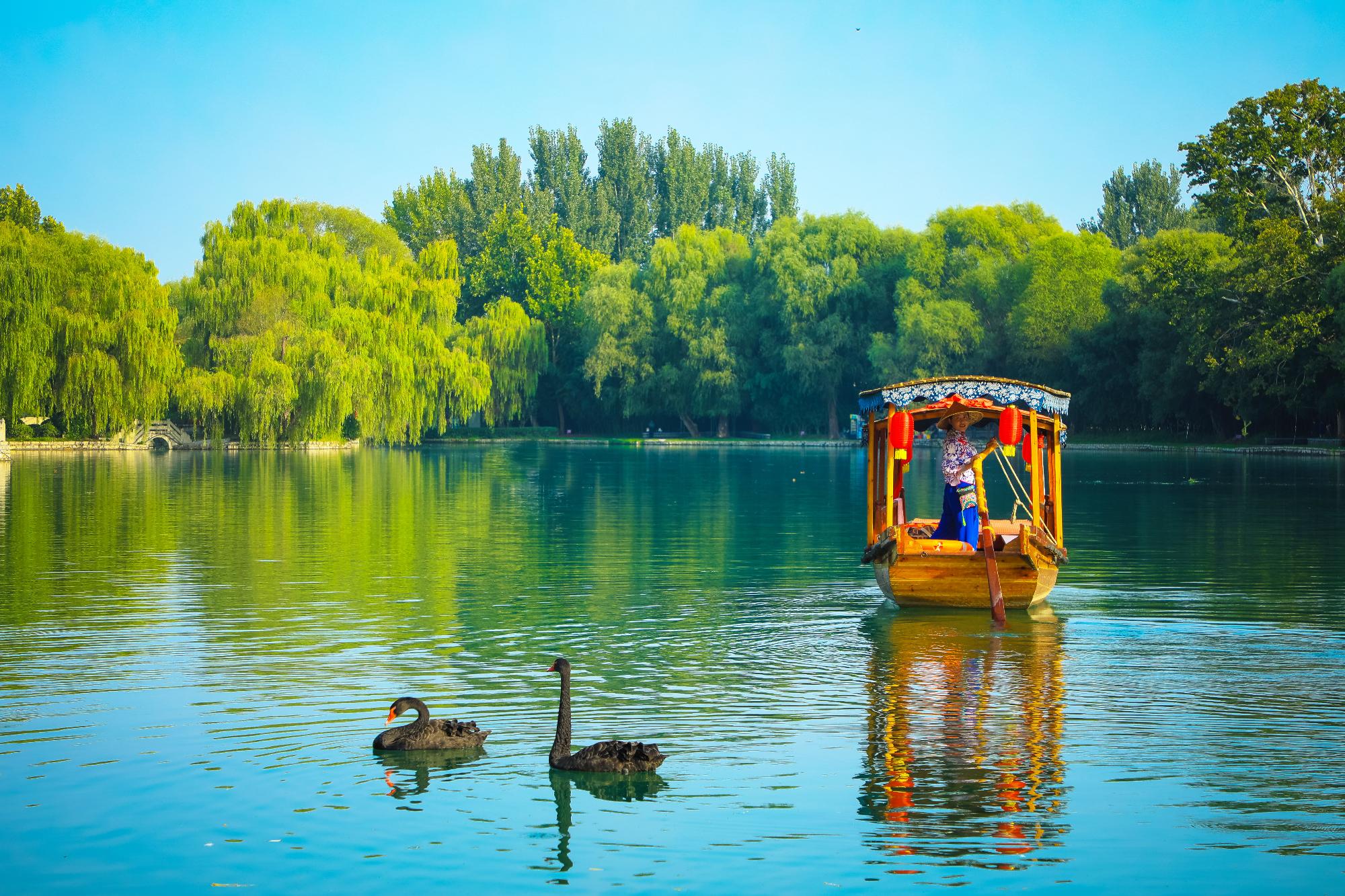 老龍灣搖櫓船可乘坐八名游客,沿老龍灣主水面環(huán)游一圈,時長半個小時。置身湖中,一邊聆聽船妹子講解老龍灣的前世今生,哼唱各種小調(diào);一邊隨著船身的搖晃欣賞兩岸的美景,置身于老龍灣的美景中宛若“人在畫中游”。
