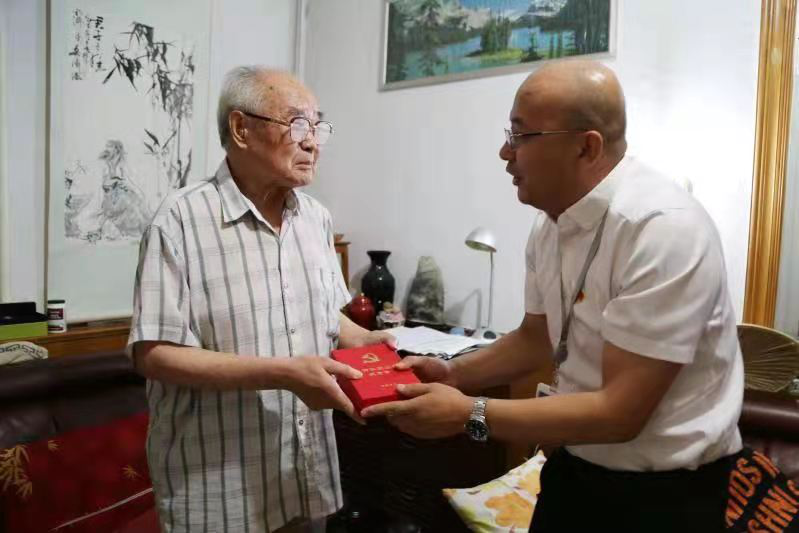 6月25日,山東省國(guó)欣文化旅游發(fā)展集團(tuán)有限公司(簡(jiǎn)稱“國(guó)欣文旅”或“集團(tuán)”)黨委委員、副總經(jīng)理孫超率隊(duì)到集團(tuán)退休老黨員張?jiān)谙婕抑凶咴L慰問,并向其頒發(fā)“光榮在黨50年”紀(jì)念章,送去組織的親切關(guān)懷并致以崇高敬意。