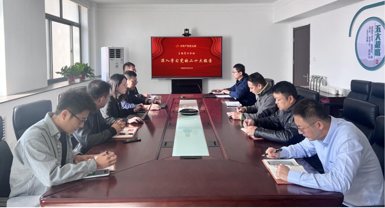 為深入學習貫徹落實黨的二十大報告精神,全面準確地把握報告豐富內(nèi)涵、精髓要義、精神實質(zhì),10月17日,齊魯產(chǎn)投黨支部組織開展“深入學習黨的二十大報告”主題黨日活動,黨支部書記、副總經(jīng)理楊貴霞主持會議。