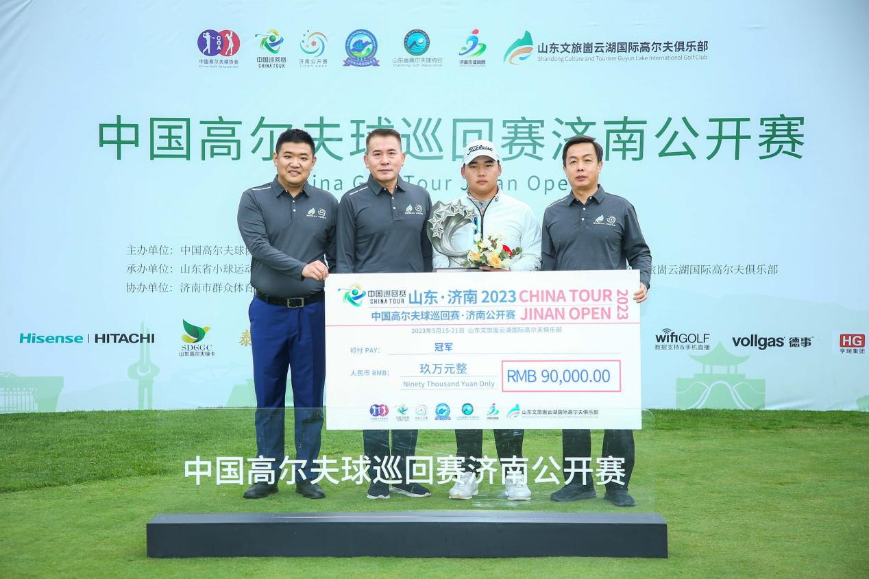 5月21日,首屆中國(guó)高爾夫球巡回賽-濟(jì)南公開(kāi)賽(以下簡(jiǎn)稱“中巡賽-濟(jì)南公開(kāi)賽”)在山東文旅五峰山公司崮云湖高爾夫圓滿落幕,中國(guó)高爾夫球協(xié)會(huì)副主席兼秘書(shū)長(zhǎng)龐政,山東文旅集團(tuán)黨委委員、副總經(jīng)理喬衛(wèi)東,山東省小球運(yùn)動(dòng)聯(lián)合會(huì)、山東省高爾夫球協(xié)會(huì)秘書(shū)長(zhǎng)胡東方受邀為賽事冠軍頒獎(jiǎng)慶賀,長(zhǎng)清區(qū)體育事業(yè)發(fā)展中心主任杜更勇與五峰山公司黨支部書(shū)記、董事長(zhǎng)劉偉共同出席頒獎(jiǎng)儀式。