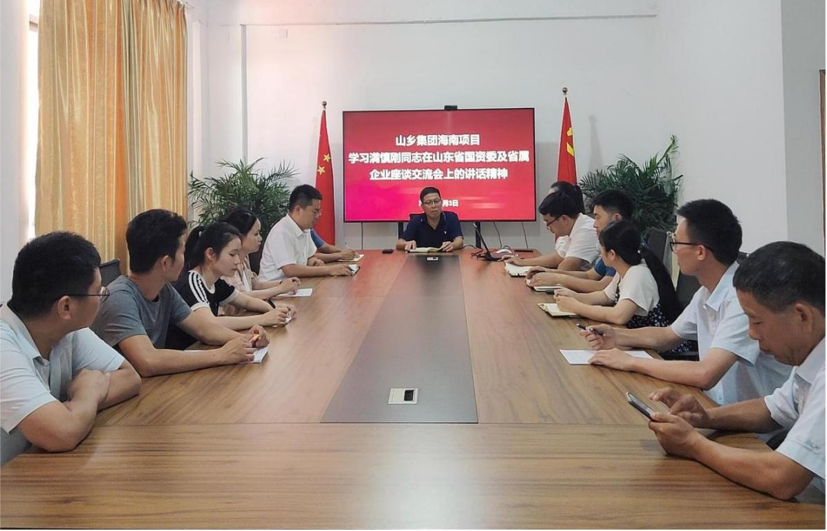 為深入學(xué)習(xí)貫徹落實會議精神特別是滿慎剛同志講話要求,6月3日下午,山鄉(xiāng)集團(tuán)海南項目迅速行動,第一時間組織召開專題會議,傳達(dá)學(xué)習(xí)會議精神及講話要求,研究部署相關(guān)落實工作。山鄉(xiāng)集團(tuán)黨委委員、副總經(jīng)理馬光金主持會議。