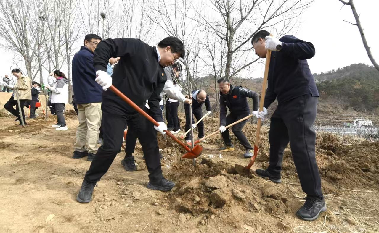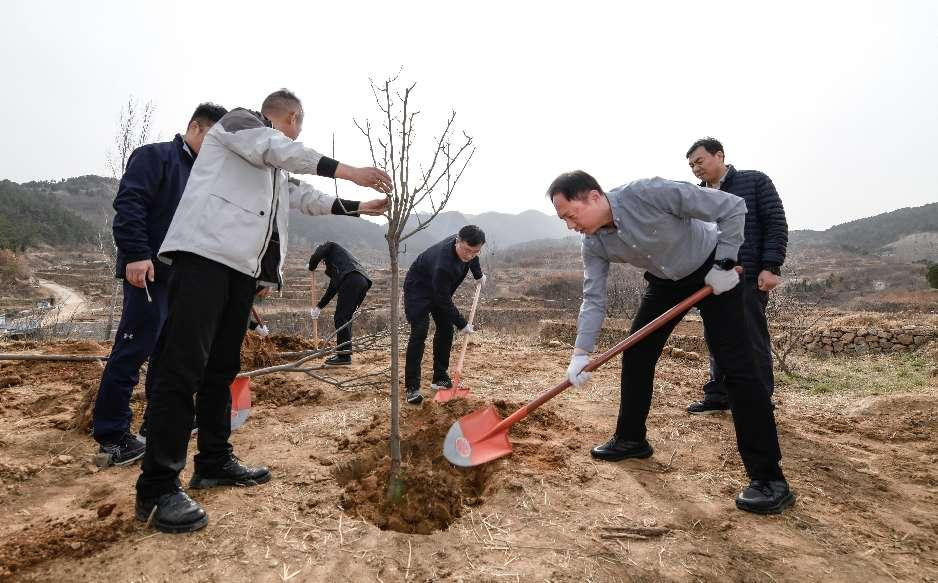 春風(fēng)拂綠,萬象更新。3月12日,山東文旅集團(tuán)與山東海洋集團(tuán)在天上的街市鄉(xiāng)村旅游度假區(qū)聯(lián)合開展“給大地增綠 為黨旗添彩”植樹節(jié)黨建共建主題黨日活動。雙方領(lǐng)導(dǎo)及總部黨員代表40余人齊聚鄉(xiāng)村振興一線,以實際行動牢固樹立和踐行綠水青山就是金山銀山理念。