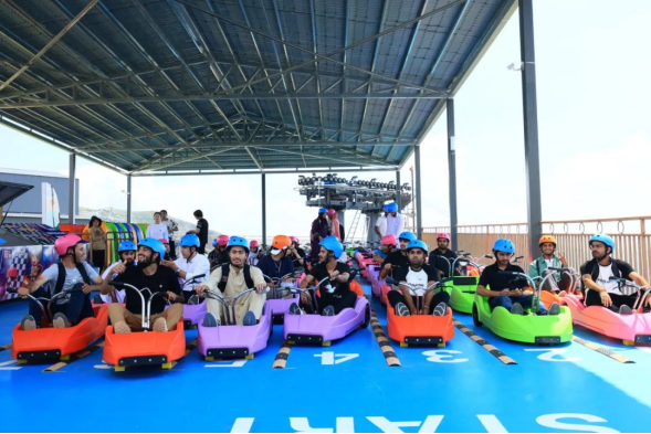 在感受自然魅力的同時,留學(xué)生們還體驗了景區(qū)內(nèi)刺激的游樂項目。登上1088米高的“水如意”觀景平臺,碧綠的湖水與湛藍的天空交相輝映,360度全景山河盡收眼底。乘坐新西蘭滑板車沿蜿蜒山道疾馳而下,呼嘯的風聲與變幻的峽谷美景交織,帶來風馳電掣的快感,而龍嘯飛車穿行于21°C的清涼峽谷中,速度與涼爽的完美融合,更讓他們感受到夏日里的別樣清涼。部分留學(xué)生感慨道:“這里的包容就像這壯闊的山水,讓我們感受到中國的胸懷?!?nbsp;
