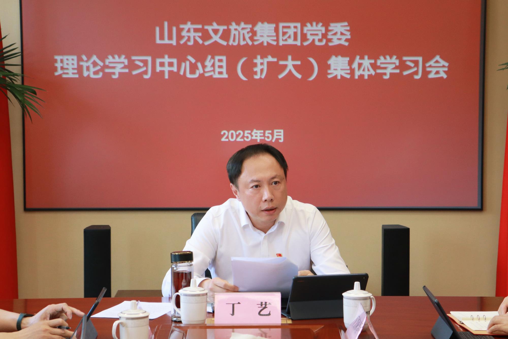 5月26日,山東文旅集團黨委書記、董事長丁藝主持召開集團黨委理論學習中心組(擴大)2025年第6次集體學習會,重點圍繞“做好新時代黨的統(tǒng)一戰(zhàn)線、群團工作,加強社會工作、提升社會治理效能,加強和改進信訪工作,凝聚企業(yè)發(fā)展合力”主題開展學習。集團黨委委員、副總經(jīng)理于偉,投資部部長宋燕作交流發(fā)言。