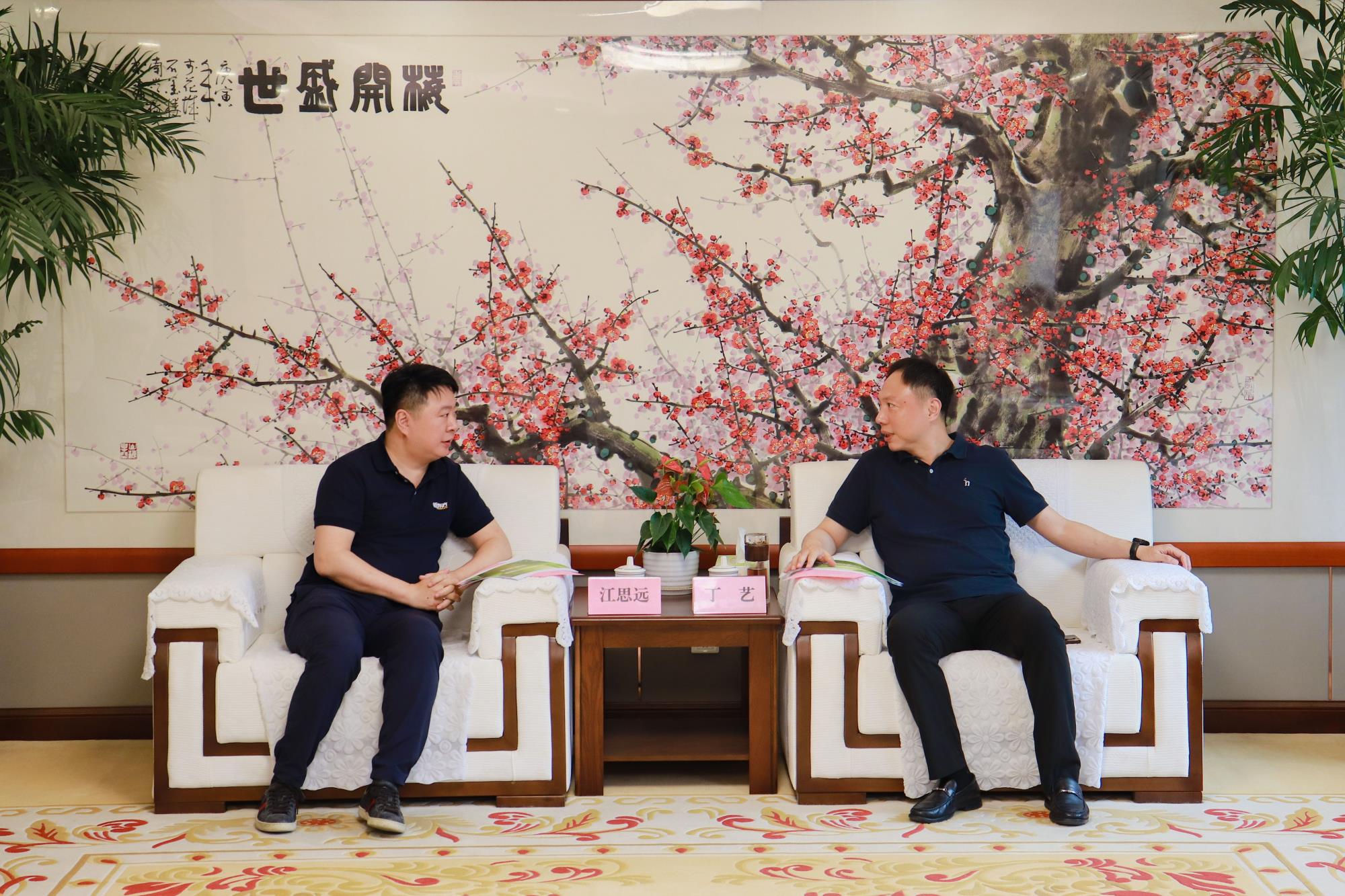 5月28日,新東方文旅集團副總裁江思遠一行到山東文旅集團座談交流,集團黨委書記、董事長丁藝會見。