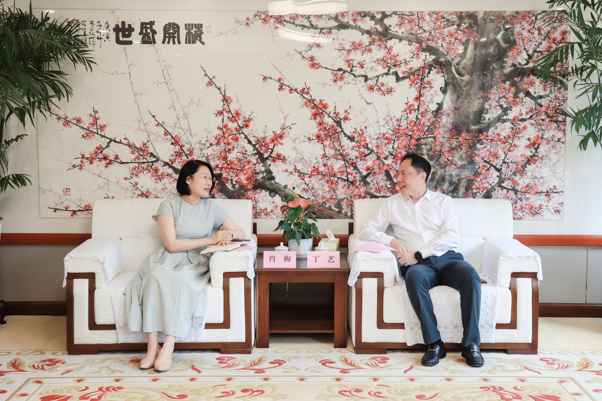 7月9日,日照職業(yè)技術(shù)學(xué)院黨委書(shū)記肖梅一行到山東文旅集團(tuán)座談交流,集團(tuán)黨委書(shū)記、董事長(zhǎng)丁藝會(huì)見(jiàn)。