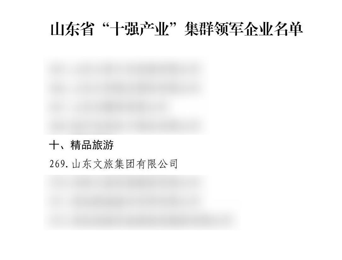 近日,山東省發(fā)展和改革委員會(huì)印發(fā)了“十強(qiáng)產(chǎn)業(yè)”雁陣形產(chǎn)業(yè)集群儲(chǔ)備庫(kù)及集群領(lǐng)軍企業(yè)名單,山東文旅集團(tuán)成功入選精品旅游產(chǎn)業(yè)集群領(lǐng)軍企業(yè)。