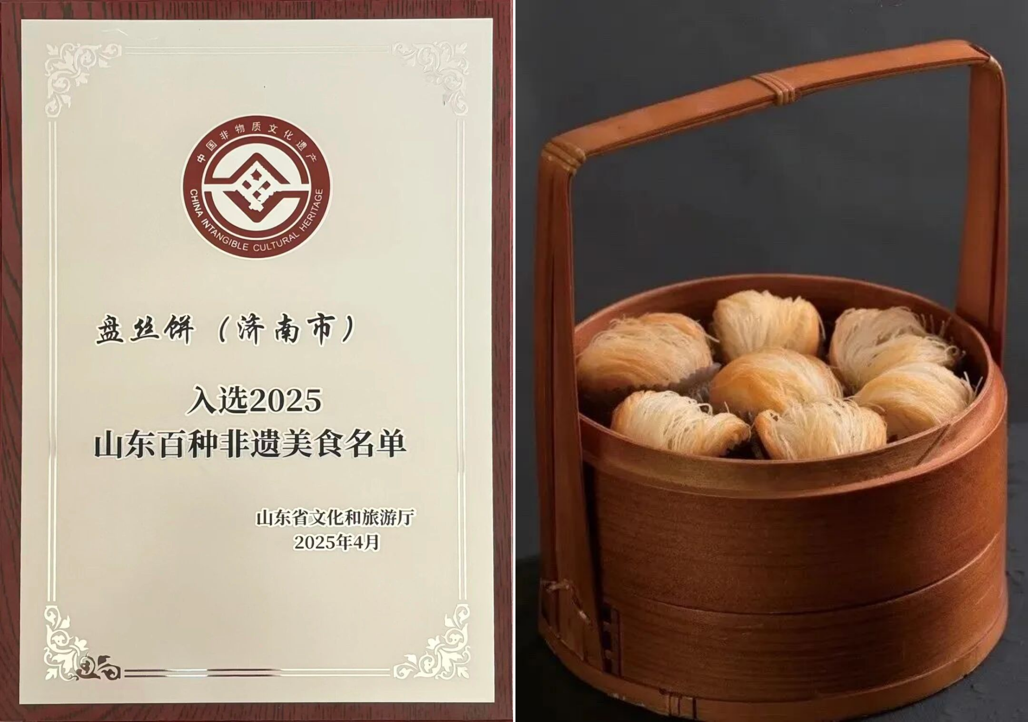 在山東省文化和旅游廳組織開展的“山東百種非遺美食”推薦活動中,山東文旅酒店集團泉城大酒店提報的“盤絲餅”,經(jīng)廣大市民與傳統(tǒng)美食愛好者踴躍投票,成功“TOP出道”,入選2025山東百種非遺美食名單。