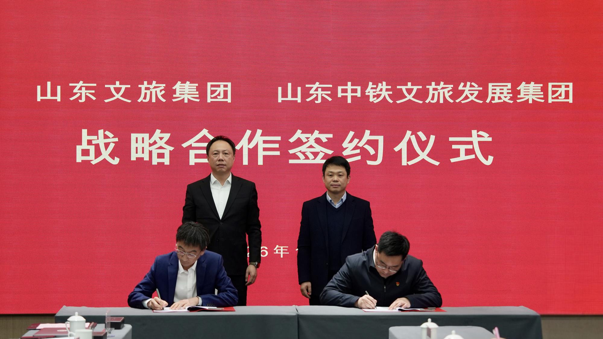 儀式上,山東文旅集團(tuán)黨委委員、副總經(jīng)理楊富琛與山東中鐵文旅發(fā)展集團(tuán)副總經(jīng)理張博共同簽署了戰(zhàn)略合作協(xié)議。未來,雙方將以開放協(xié)同的姿態(tài),持續(xù)深化在業(yè)態(tài)創(chuàng)新、品牌共建、數(shù)字賦能等領(lǐng)域的探索,共同為推動山東省文旅產(chǎn)業(yè)轉(zhuǎn)型升級與高質(zhì)量發(fā)展貢獻(xiàn)智慧與力量。
