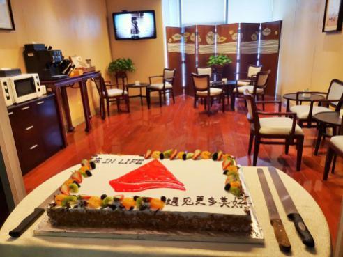 走進(jìn)去的一剎那,大家都幸福地尖叫起來。陽光明媚、樂聲悠揚,寬敞通透的空間,一盆盆綠植展示著盎然的春機(jī),小巧實用的咖啡機(jī)、飲水機(jī)、微波爐一應(yīng)俱全,優(yōu)雅的風(fēng)景畫仿佛也散發(fā)著大自然的氣息。在這里,您可以隨時來喝一杯美式咖啡,一杯紅茶,一杯冰凍的飲品,或者,您自備的枸杞紅棗湯。美味的自制便當(dāng),亦可以在這里加溫分享。