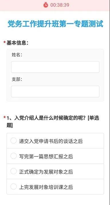 “發(fā)展黨員全流程排序”“培養(yǎng)聯(lián)系人有哪些任務”,會上,結合前期學習內容開展在線測試檢驗學習成效。測試期間,各支部黨務工作者踴躍答題,爭當學習標兵,并及時曬出成績單,以測促學,以學促行,用優(yōu)異成績?yōu)辄h建標準化打下堅實基礎。