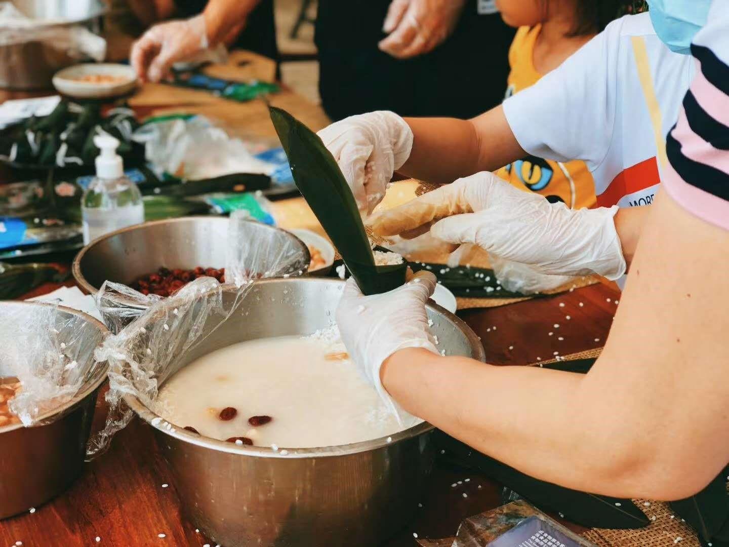 每個(gè)端午都不能缺少粽子,節(jié)日當(dāng)天,索菲特銀座大飯店、青島魯商凱悅酒店、泉城大酒店等酒店均準(zhǔn)備好了粽葉、江米、紅棗等必備材料,大廚手把手指導(dǎo)包粽子的具體步驟,現(xiàn)場顧客踴躍參與,紛紛上手,互幫互學(xué),一邊卷葉、盛米、壓棗、纏繩,一邊話家常,將滿滿的快樂和祝福都包進(jìn)粽子里,活動(dòng)現(xiàn)場粽香四溢,洋溢著濃濃的節(jié)日氛圍。泉城大酒店聯(lián)合承辦的“致敬白衣天使 共享端午粽情”,邀請6組“戰(zhàn)疫最美家庭”共度端午,酒店高級(jí)面點(diǎn)師孫在嬌現(xiàn)場示范了多種粽子的包法,醫(yī)護(hù)人員與家人一起,包粽子、賞民俗、互祝幸福安康。趵突泉畔包出的泉水粽,為端午佳節(jié)增添了靈秀的風(fēng)味,讓市民和游客度過一個(gè)歡樂祥和的端午佳節(jié)。
