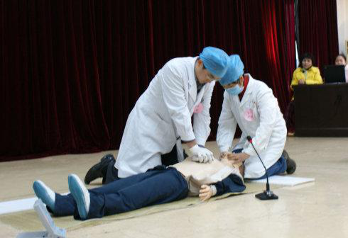 為做好游客意外傷害處理、救援工作,提高全體員工基本救援技能,景區(qū)邀請(qǐng)新泰市中醫(yī)院外科主任,對(duì)全體人員進(jìn)行外傷處理、心臟按壓等應(yīng)急救援培訓(xùn)。