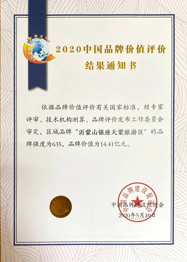 早在今年5月8日,由山東省市場(chǎng)監(jiān)管局牽頭舉辦的山東省2020年“中國品牌日”活動(dòng)。山東天蒙旅游開發(fā)有限公司憑借自身企業(yè)品牌價(jià)值實(shí)力榮登“2020年度山東省服務(wù)業(yè)高端品牌培育企業(yè)名單”榜單,成為首批入選的67家山東省服務(wù)業(yè)高端品牌培育企業(yè)之一。