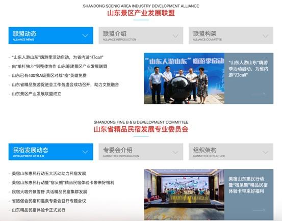 同時(shí),在網(wǎng)站首頁(yè)下方特別添加“山東景區(qū)產(chǎn)業(yè)發(fā)展聯(lián)盟”及“山東省精品旅游促進(jìn)會(huì)民宿發(fā)展專業(yè)委員會(huì)”版塊,詳細(xì)介紹了兩個(gè)組織的具體情況與發(fā)展動(dòng)態(tài),為聯(lián)盟及專委會(huì)各成員提供了一個(gè)品牌展示、資源共享的平臺(tái),為山東景區(qū)發(fā)展及民宿發(fā)展提供有效服務(wù),推動(dòng)聯(lián)盟內(nèi)部多方合作,協(xié)同發(fā)展,提升景區(qū)及民宿整體影響力和競(jìng)爭(zhēng)力。