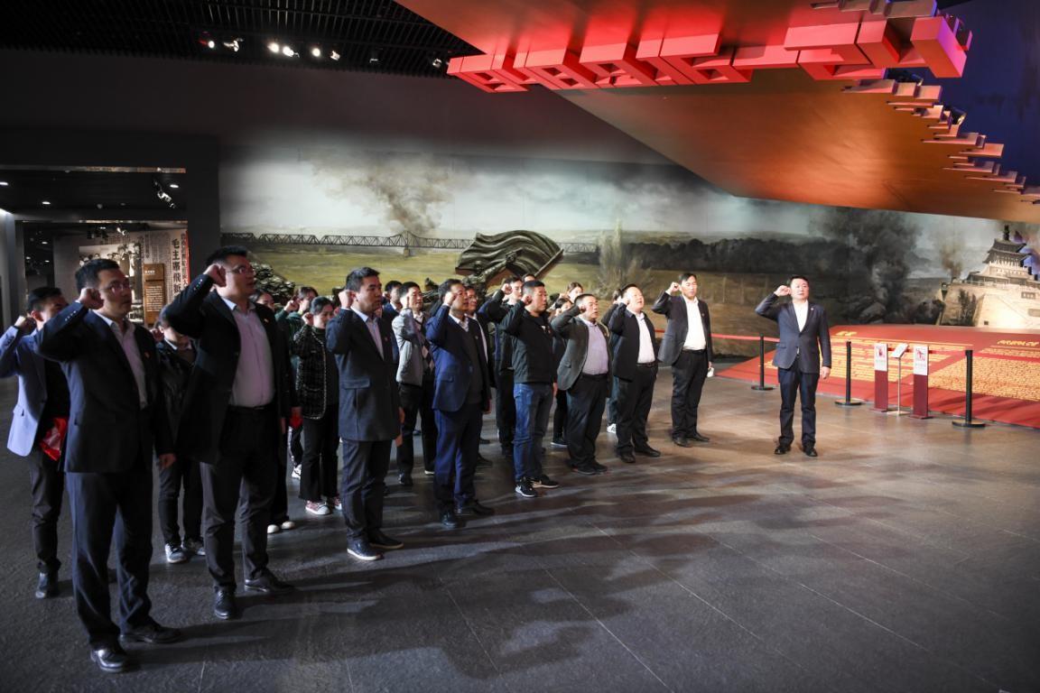 在濟南戰(zhàn)役紀念館,由支部委員曲端正領誓,鄉(xiāng)發(fā)展黨員干部職工重溫入黨誓詞,不忘入黨初心。隨后,大家在講解員的帶領下參觀了陳列展廳。一張張老照片、一個個老物件,重現(xiàn)了當年濟南攻堅戰(zhàn)激烈壯觀的場面。革命先輩們?nèi)f眾一心、團結(jié)奮戰(zhàn)、同仇敵愾、勇于攻堅、嚴格紀律的精神深深觸動著在場的每一個人。在觀看全景畫《濟南戰(zhàn)役》時,大家仿佛又回到了那段崢嶸歲月,為曾經(jīng)的那場悲壯戰(zhàn)斗所震撼。最后,全體人員瞻仰革命烈士紀念塔,緬懷先烈事跡,激起深厚的愛國情懷。