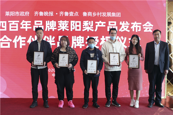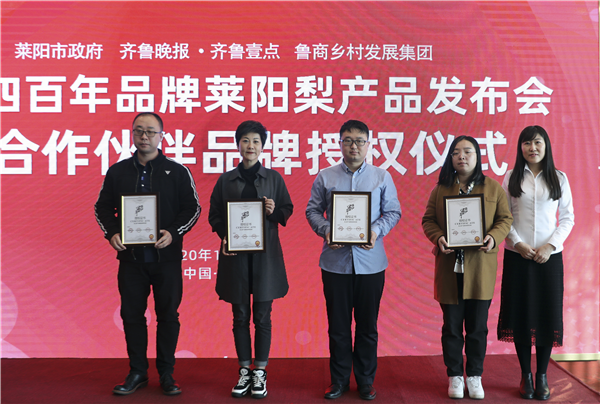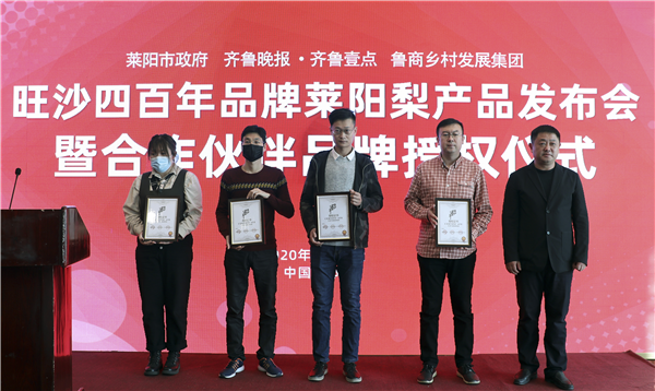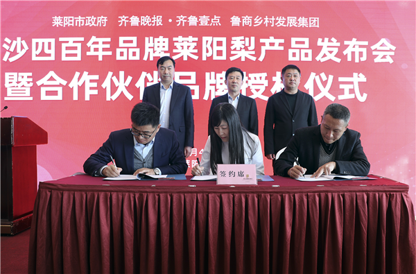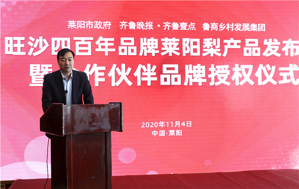11月4日,山東省國欣文化旅游發(fā)展集團旗下魯商鄉(xiāng)村發(fā)展集團(簡稱“鄉(xiāng)發(fā)展”)、齊魯晚報·齊魯壹點與萊陽市照旺莊鎮(zhèn)政府在萊陽舉行“旺沙四百年”萊陽梨產(chǎn)品發(fā)布會暨合作伙伴品牌授權儀式。大眾報業(yè)集團社委委員、齊魯報系黨總支書記、齊魯晚報總經(jīng)理張?zhí)煨l(wèi),鄉(xiāng)發(fā)展外部董事、財務總監(jiān)王蘇洲,萊陽市照旺莊鎮(zhèn)黨委書記李志軍等出席活動。