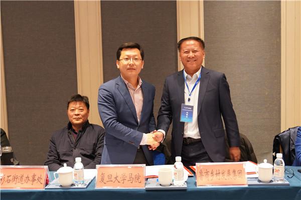 魯商鄉(xiāng)村發(fā)展集團有限公司(簡稱鄉(xiāng)發(fā)展)作為山東鄉(xiāng)村振興企業(yè)的唯一代表參加論壇,作了題為《強產業(yè) 筑平臺 建樣板 促振興》的發(fā)言,并在論壇啟動的“鄉(xiāng)村振興牽手計劃”中,與復旦大學馬克思主義學院“牽手”,共建鄉(xiāng)村振興實踐研究基地。復旦大學馬克思主義學院院長李冉、鄉(xiāng)發(fā)展總經(jīng)理曲勇代表雙方簽署了合作協(xié)議。復旦大學馬克思主義學院將在鄉(xiāng)發(fā)展泰山·九女峰鄉(xiāng)村度假區(qū)八樓村、里峪村設立“復旦大學鄉(xiāng)村振興齊魯實踐研究基地”,開展鄉(xiāng)村振興經(jīng)驗研究,并為齊魯樣板建設提供技術與智力支持,協(xié)同開展理論宣講與干部培訓,共同打造鄉(xiāng)村振興品牌。