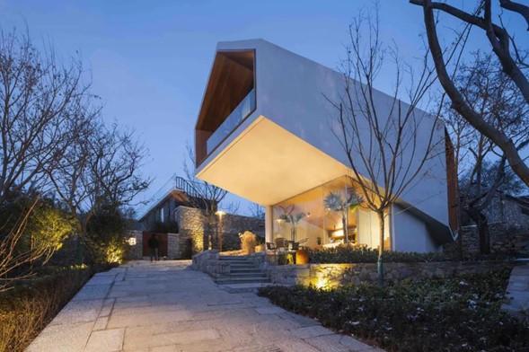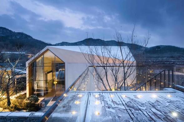建筑沒有夸張的體量,它靜悄悄地在跟周邊的山石和樹木對(duì)話,不打破小山村的寧靜。