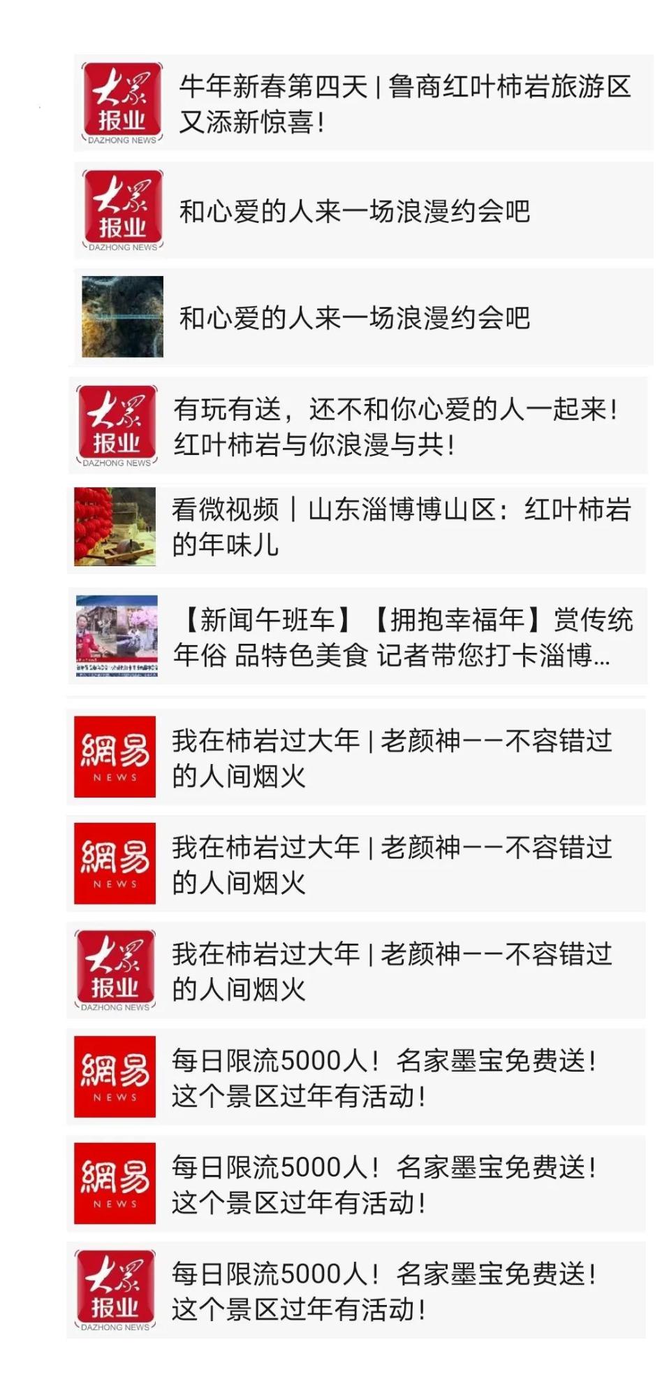 為滿足游客旅游休閑需求,山東文旅景區(qū)集團(tuán)積極推廣景區(qū)文化活動(dòng),各景區(qū)通過微信平臺(tái)及抖音號(hào)每天推送旅游信息及視頻,引導(dǎo)游客前往游覽。其中,紅葉柿巖景區(qū)假期抖音話題瀏覽量累計(jì)幾千萬(wàn)次,并榮登淄博市同類景區(qū)游客接待量第一名,成為淄博市春節(jié)假期休閑旅游的熱門景點(diǎn)。