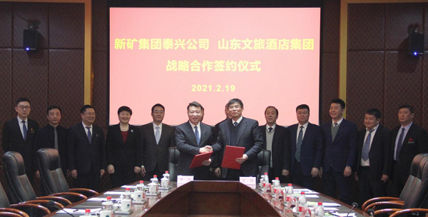 19日上午,山東文旅酒店集團(tuán)與新礦集團(tuán)泰興公司戰(zhàn)略合作協(xié)議簽約儀式在泰安舉行。李浩與新礦集團(tuán)泰興公司董事長、華源礦業(yè)黨委書記、董事長王偉代表雙方簽署戰(zhàn)略合作協(xié)議。