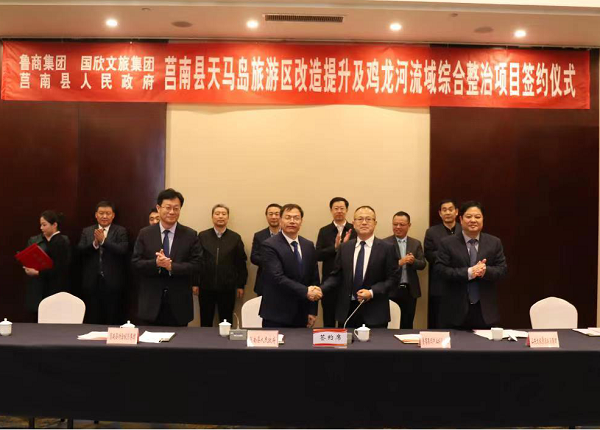 3月23日上午,魯商集團(tuán)、國(guó)欣文旅與臨沂市莒南縣天馬島旅游區(qū)及雞龍河流域綜合整治項(xiàng)目簽約儀式在莒南縣舉行。魯商集團(tuán)黨委書記、董事長(zhǎng)兼國(guó)欣文旅董事長(zhǎng)高洪雷,臨沂市委常委、市政府常務(wù)副市長(zhǎng)侯曉濱出席簽約儀式并分別致辭。臨沂市政協(xié)副主席譚慶功,魯商集團(tuán)黨委副書記、董事劉守亮,國(guó)欣文旅黨委委員、副總經(jīng)理、山東文旅景區(qū)集團(tuán)黨委書記、董事長(zhǎng)季將參加。