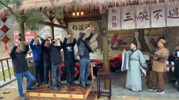 博山紅葉柿巖景區(qū)上線的全新項(xiàng)目“十字坡孫二娘包子鋪”“好漢摔碗酒”吸引眾多游客前來打卡體驗(yàn)。各位“好漢們”端起酒碗一飲而盡,豪氣摔碗,孫二娘包子鋪熱氣騰騰的肉包子更是供不應(yīng)求,皮薄、餡大的包子吸引了各地游客前來品嘗。