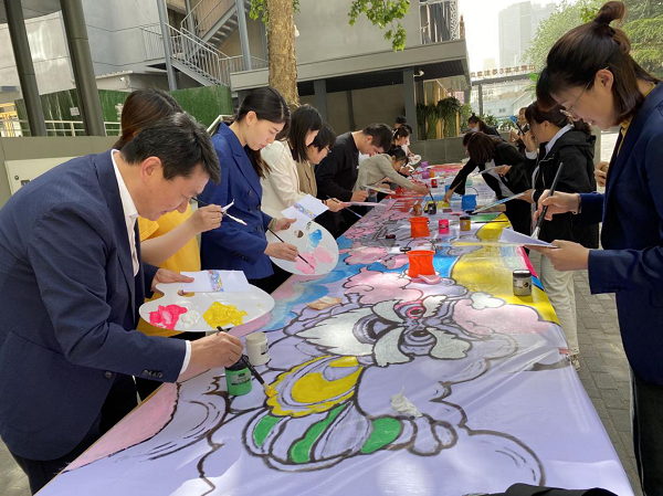 活動(dòng)現(xiàn)場(chǎng),大家在專業(yè)老師的指導(dǎo)下,用五彩斑斕的畫筆勾勒藍(lán)天白云和壯美景觀,抒寫對(duì)黨和國(guó)家的祝福,對(duì)鄉(xiāng)村振興事業(yè)蒸蒸日上的期盼。在大家的精心繪制下,一幅絢麗多彩、蓬勃向上的“江山如此多嬌”畫卷呈現(xiàn)在大家眼前,吸引園區(qū)參觀人員駐足欣賞,成為了園區(qū)一道亮麗的風(fēng)景。