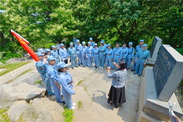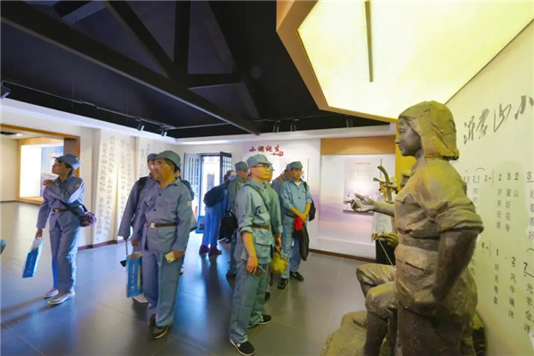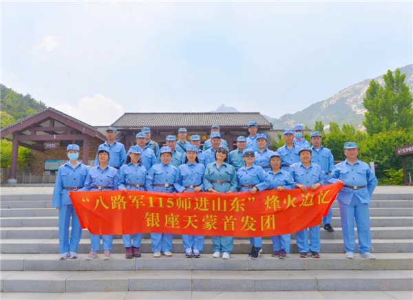 首發(fā)團(tuán)先來到大青山勝利突圍紀(jì)念館,重溫入黨誓詞,重走大青山突圍路,感受革命艱辛歷程。之后赴沂蒙山銀座天蒙旅游區(qū),著八路軍服裝,吃憶苦思甜飯,參觀沂蒙山小調(diào)活態(tài)博物館,學(xué)唱《沂蒙山小調(diào)》歌曲,體驗(yàn)八路軍滿缸運(yùn)動、匍匐前進(jìn)、獨(dú)木橋、小推車等。銀座旅行社精心安排專業(yè)導(dǎo)游在每個景點(diǎn)為大家詳細(xì)講述相關(guān)歷史和革命故事,帶領(lǐng)大家重溫老一輩革命先烈的光榮事跡。