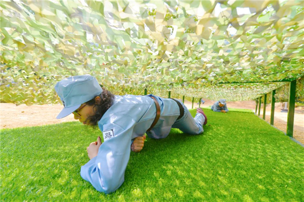 傳承精神----體驗(yàn)八路軍滿缸運(yùn)動、匍匐前進(jìn)、獨(dú)木橋、小推車等。