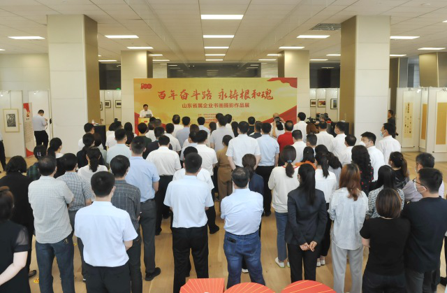 奮斗百年路,國企心向黨。由中共山東省國資委委員會主辦,山東省農(nóng)村信用社聯(lián)合社、山東省國欣文化旅游發(fā)展集團(tuán)有限公司(簡稱“國欣文旅”)、山東省土地發(fā)展集團(tuán)有限公司聯(lián)合承辦的“百年奮斗路 永鑄根和魂——山東省屬企業(yè)書畫攝影作品展”于6月18日在黃金時代廣場A座舉行。省國資委黨委書記、主任張斌,黨委委員、副主任尹剛出席開幕式。