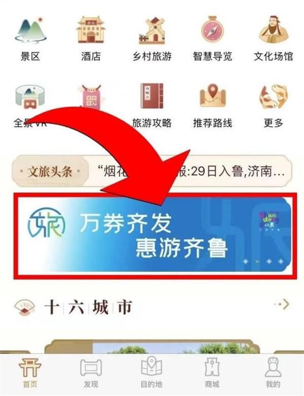 怎樣領(lǐng)取并使用文旅惠民消費(fèi)券?首先,搜索下載“云游齊魯APP”,或直接在微信搜索“云游齊魯”小程序。點(diǎn)擊“萬(wàn)券齊發(fā),惠游齊魯”。