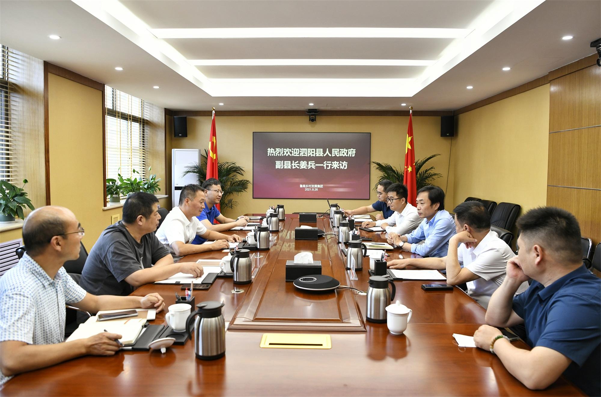8月26日,江蘇省宿遷市泗陽(yáng)縣副縣長(zhǎng)姜兵一行到魯商鄉(xiāng)村發(fā)展集團(tuán)有限公司(以下簡(jiǎn)稱“鄉(xiāng)發(fā)展集團(tuán)”)考察交流。鄉(xiāng)發(fā)展集團(tuán)黨委書(shū)記、董事長(zhǎng)張建峰,濟(jì)寧貫通農(nóng)產(chǎn)品市場(chǎng)開(kāi)發(fā)有限公司董事長(zhǎng)侯家塘陪同參加考察活動(dòng)。