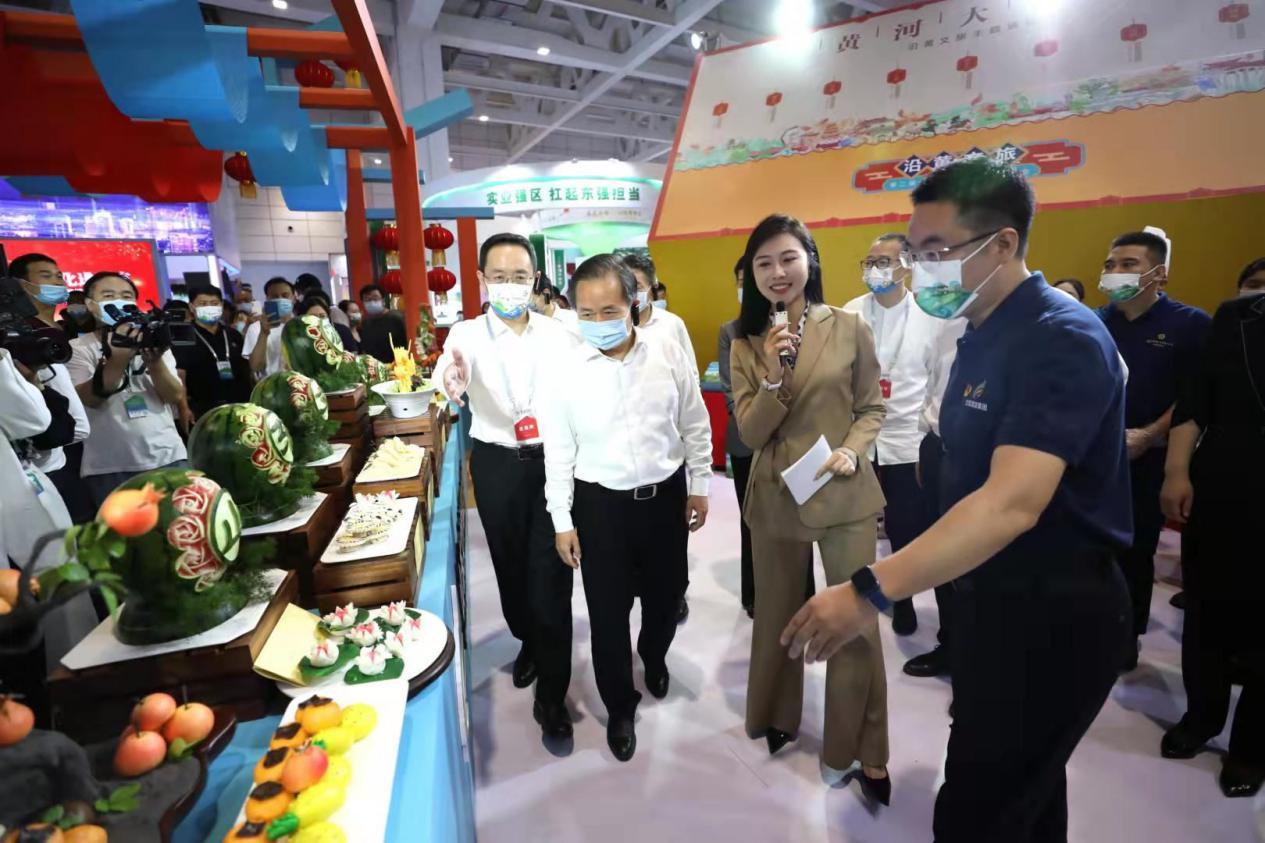 16日上午,開幕當(dāng)日,省委常委、宣傳部部長(zhǎng)白玉剛等領(lǐng)導(dǎo)參加開幕式并重點(diǎn)參觀了紅色、沿黃文旅主題展區(qū)。在展區(qū)內(nèi),與內(nèi)蒙古展團(tuán)展商、山東文旅魯菜館非遺傳承人進(jìn)行交流。