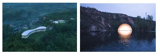 “故鄉(xiāng)的云”利用當(dāng)?shù)卮迕耖e置院落,將山林掩映、山野自然融為一體,最大程度地賦予了居住空間詩(shī)意美學(xué)?!肮枢l(xiāng)的月”主體結(jié)構(gòu)與兩側(cè)峭壁巧妙結(jié)合,通過(guò)屋頂水面倒影,將屋頂天窗映成了一輪圓月,象征著四方游子對(duì)故鄉(xiāng)的獨(dú)特眷戀。