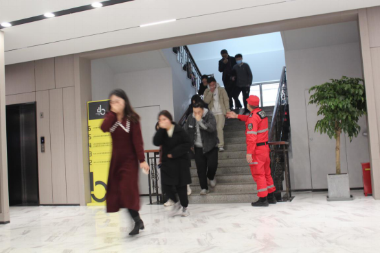 本次演練采取情景模擬和現(xiàn)場(chǎng)演練相結(jié)合的方式。工作人員按響聲光報(bào)警器后,辦公樓內(nèi)各樓層撲救員迅速取出滅火器進(jìn)行撲救,報(bào)警員、疏散員立即組織人員快速有序疏散,同時(shí),安保人員接到報(bào)警后快速到達(dá)著火點(diǎn),打開消火栓進(jìn)行撲救,最終險(xiǎn)情被及時(shí)控制,人員均疏散至室外安全位置。
