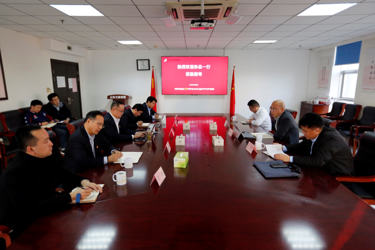 根據(jù)山東省國(guó)欣文化旅游發(fā)展集團(tuán)有限公司(簡(jiǎn)稱“國(guó)欣文旅”)工作安排,12月13日,國(guó)欣文旅黨委委員、副總經(jīng)理孫超到山東文旅傳媒集團(tuán)調(diào)研。山東文旅傳媒集團(tuán)黨委書(shū)記、董事長(zhǎng)、山東省文旅產(chǎn)業(yè)創(chuàng)新研究院院長(zhǎng)龐道鋒作工作匯報(bào)。