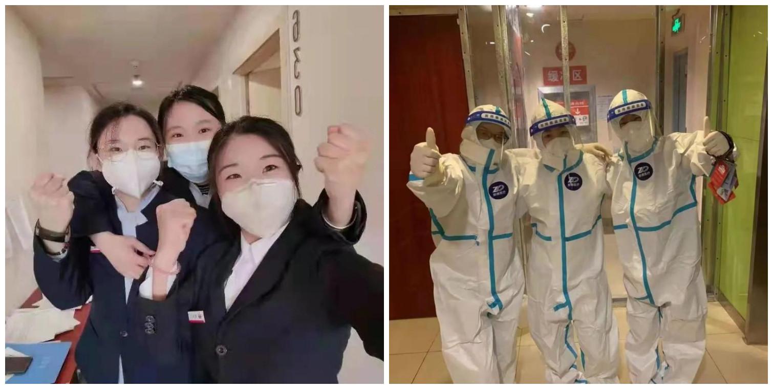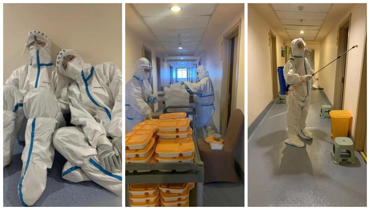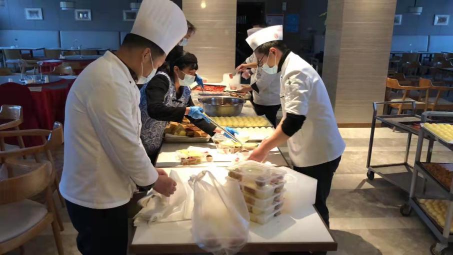 餐飲主管王凱田放棄休假主動請纓在酒店值班,為疫情防控貢獻力量;客房服務人員穿上防護服每日穿梭在各個房間中,為酒店隔離人員進行住房清潔……