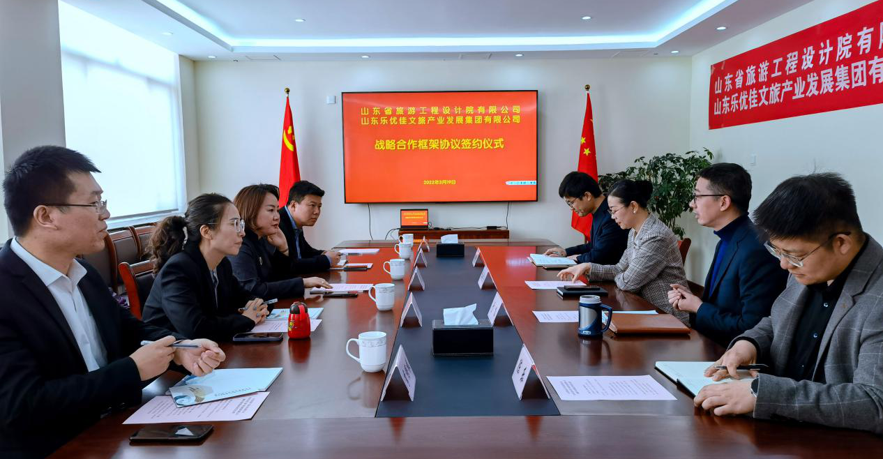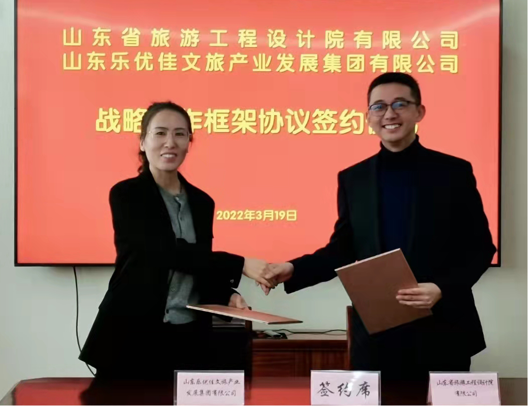 3月19日,山東省旅游工程設(shè)計院有限公司(簡稱“省旅游設(shè)計院”)與山東樂優(yōu)佳文旅產(chǎn)業(yè)發(fā)展集團有限公司(簡稱“樂優(yōu)佳文旅集團”)舉行戰(zhàn)略合作簽約儀式。省旅游設(shè)計院黨支部書記、執(zhí)行董事孫曉靜,樂優(yōu)佳文旅集團董事長崔鑫出席儀式。
