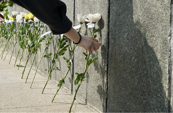 春風(fēng)拂去傷痛,遙寄吾之哀思。4月5日,云游齊魯智慧文旅平臺(tái)工作人員帶著數(shù)百網(wǎng)友的心意,手持鮮花,佩戴口罩,以鞠躬、獻(xiàn)花、擦拭之儀,為英烈獻(xiàn)上春日之花。獻(xiàn)花過(guò)程中,不時(shí)有周邊前來(lái)追思的群眾主動(dòng)加入獻(xiàn)花隊(duì)伍,讓英烈的精神得以傳承。