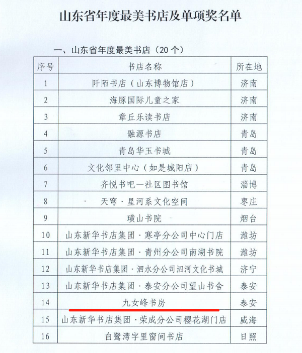 近日,山東省委宣傳部公示2022年度山東省年度最美書(shū)店及單項(xiàng)獎(jiǎng)名單,九女峰書(shū)房獲評(píng)山東省年度最美書(shū)店。此次評(píng)選活動(dòng)旨在進(jìn)一步促進(jìn)實(shí)體書(shū)店發(fā)展,提升實(shí)體書(shū)店品牌影響力。