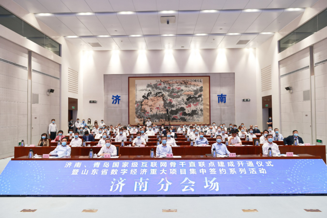 濟(jì)南、青島國(guó)家級(jí)互聯(lián)網(wǎng)骨干直聯(lián)點(diǎn)建成開通,山東省成為全國(guó)首個(gè)擁有2個(gè)國(guó)家級(jí)直聯(lián)點(diǎn)的“雙樞紐”省份。開通儀式上舉行的全省數(shù)字經(jīng)濟(jì)重大項(xiàng)目簽約活動(dòng),共有包括山東北斗衛(wèi)星應(yīng)用中心、山東軌道交通設(shè)備行業(yè)云中心及由山東文旅云智能科技有限公司主導(dǎo)建設(shè)運(yùn)營(yíng)的“好客山東 云游齊魯”智慧文旅平臺(tái)等100個(gè)項(xiàng)目完成簽約。公司總經(jīng)理于慶代表公司出席簽約儀式。