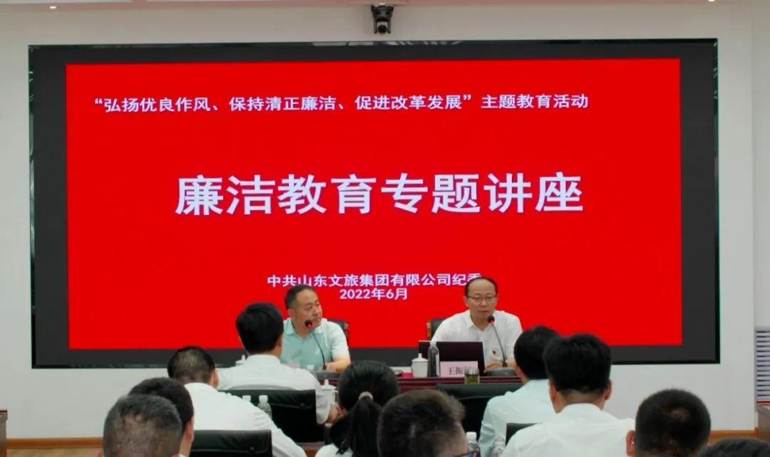 為深入貫徹落實全面從嚴(yán)治黨要求,進(jìn)一步加強(qiáng)清廉文旅建設(shè),教育引導(dǎo)黨員干部筑牢拒腐防變的思想防線,保持清正廉潔的政治本色,6月30日,山東文旅集團(tuán)紀(jì)委組織開展“弘揚(yáng)優(yōu)良作風(fēng)、保持清正廉潔、促進(jìn)改革發(fā)展”廉潔教育專題講座,邀請濱州學(xué)院黨委委員、紀(jì)委書記、監(jiān)察專員李繼峰作專題輔導(dǎo)。集團(tuán)黨委委員、紀(jì)委書記王振江主持會議并講話。