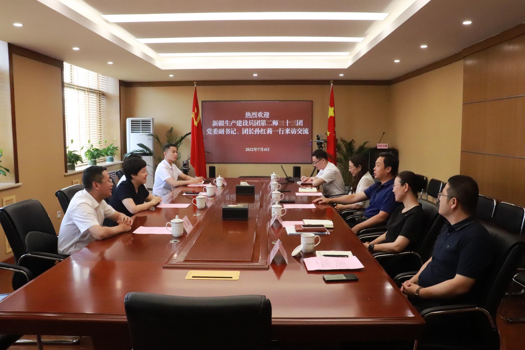 7月4日,新疆生產(chǎn)建設(shè)兵團(tuán)第二師三十三團(tuán)黨委副書(shū)記、團(tuán)長(zhǎng)孫紅莉一行到訪山東文旅集團(tuán),集團(tuán)黨委委員、副總經(jīng)理喬衛(wèi)東參加交流座談。