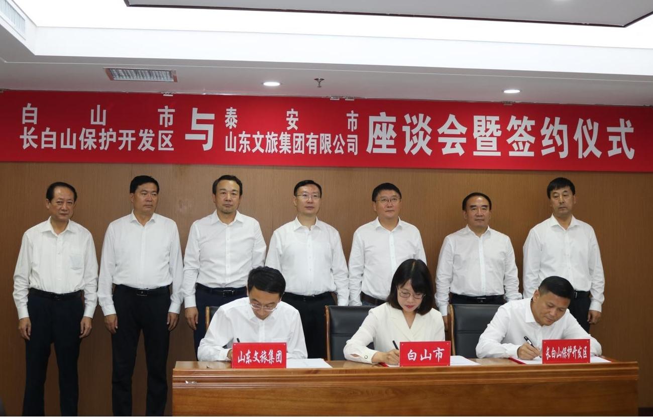 會上簽訂了《泰安市、白山市、長白山保護(hù)開發(fā)區(qū)友好合作框架協(xié)議》《白山市、長白山保護(hù)開發(fā)區(qū)、山東文旅集團(tuán)戰(zhàn)略合作協(xié)議》《吉林省長白山保護(hù)開發(fā)區(qū)管理委員會與山東省泰山風(fēng)景名勝區(qū)管理委員會友好合作協(xié)議》。
