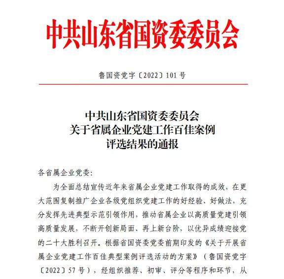 同時(shí),在近期省國(guó)資委黨委舉辦的“以高質(zhì)量黨建引領(lǐng)省屬企業(yè)高質(zhì)量發(fā)展”推進(jìn)會(huì)上,山東文旅集團(tuán)所屬山東文旅投資集團(tuán)有限公司第二黨支部被頒發(fā)“國(guó)企黨的基層組織建設(shè)優(yōu)秀案例”榮譽(yù)證書(shū)。