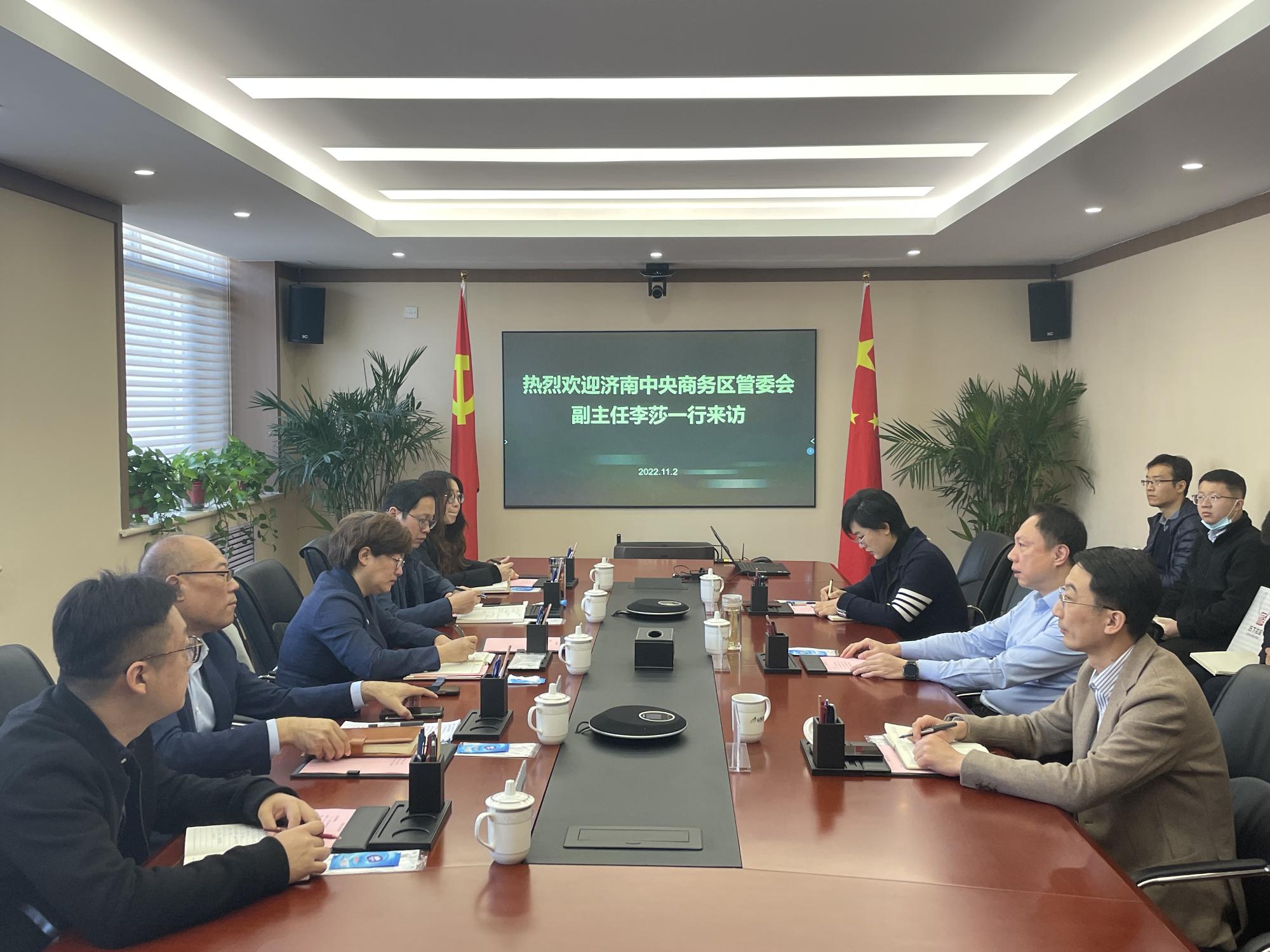 11月2日,濟南中央商務(wù)區(qū)管委會副主任李莎一行到訪山東文旅集團,集團黨委副書記、總經(jīng)理丁藝會見并參加座談。