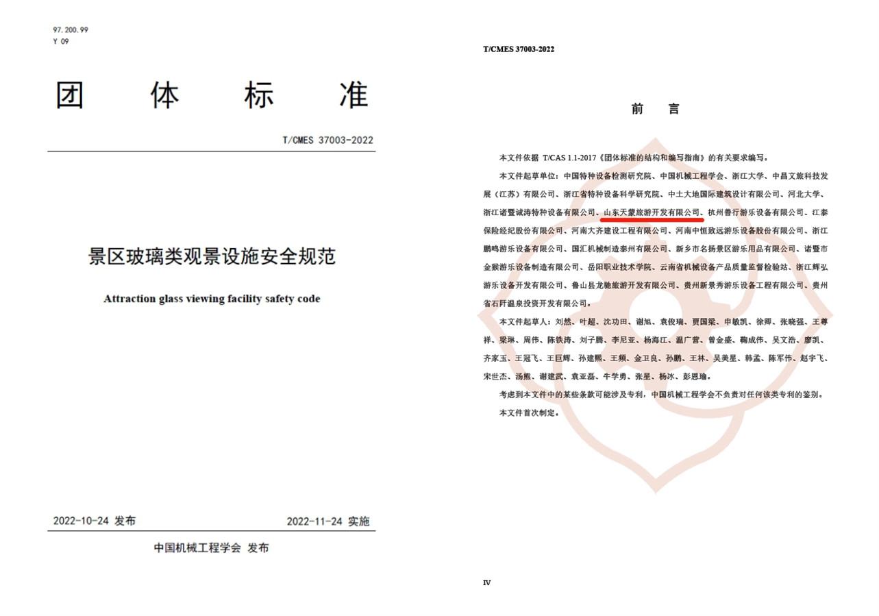 近日,山東文旅集團旗下天蒙景區(qū)作為核心起草者制定的團體標準T/CMES 37003-2022《景區(qū)玻璃類觀景設(shè)施安全規(guī)范》正式發(fā)布,這是我國首項涵蓋各類玻璃類觀景設(shè)施的安全標準。