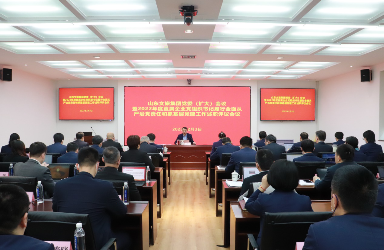 2月3日,山東文旅集團(tuán)黨委召開(kāi)2022年度黨委(擴(kuò)大)會(huì)議暨直屬企業(yè)黨組織書(shū)記履行全面從嚴(yán)治黨責(zé)任和抓基層黨建工作述職評(píng)議會(huì)議。集團(tuán)黨委書(shū)記、董事長(zhǎng)高洪雷主持會(huì)議并講話。省國(guó)資委組織與統(tǒng)戰(zhàn)工作處二級(jí)調(diào)研員張艷琳到會(huì)指導(dǎo)。