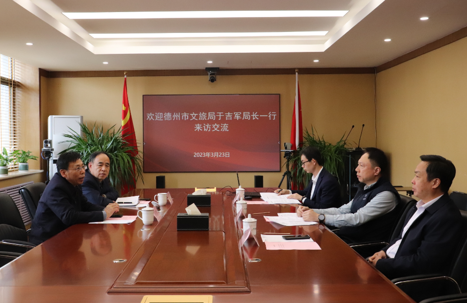 3月23日,德州市文化和旅游局黨組書記、局長于吉軍一行到訪山東文旅集團(tuán),集團(tuán)黨委副書記、總經(jīng)理丁藝會見。